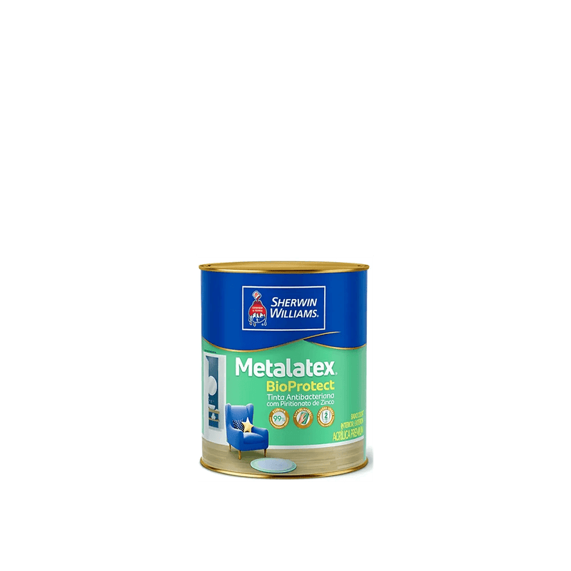 Tinta Antibacteriana Metalatex Bioprotect Branco Semi Acetinado 0,8L A Tinta Acrílica Antibacteriana Metalatex Bioprotect é a escolha ideal para quem busca proteção, higiene e durabilidade em cada pintura. Desenvolvida com tecnologia antimicrobiana de alta performance, sua fórmula exclusiva elimina até 99% das bactérias, fungos e mofos, mantendo o ambiente limpo e saudável por até 2 anos. Com acabamento semi acetinado e cor branco puro, a Bioprotect oferece ótima cobertura, fácil limpeza e alta resistência à umidade, sendo perfeita para banheiros, cozinhas, lavanderias, quartos e áreas internas expostas a vapor ou respingos. Além da proteção avançada, o produto conta com baixo odor, permitindo que o espaço seja ocupado rapidamente após a pintura — o cheiro praticamente desaparece em até 4 horas após a aplicação da segunda demão. Principais Benefícios - Elimina até 99% dos microrganismos testados - Protege contra bactérias, fungos e mofo por até 2 anos - Superlavável e resistente à limpeza frequente - Baixo odor — ideal para ambientes internos - Excelente para áreas úmidas e de uso intenso - Acabamento semi acetinado: brilho suave e sofisticado Onde aplicar Indicada para banheiros, cozinhas, lavanderias, quartos, garagens, saunas e adegas, ou qualquer ambiente que exija proteção extra contra umidade e contaminação.