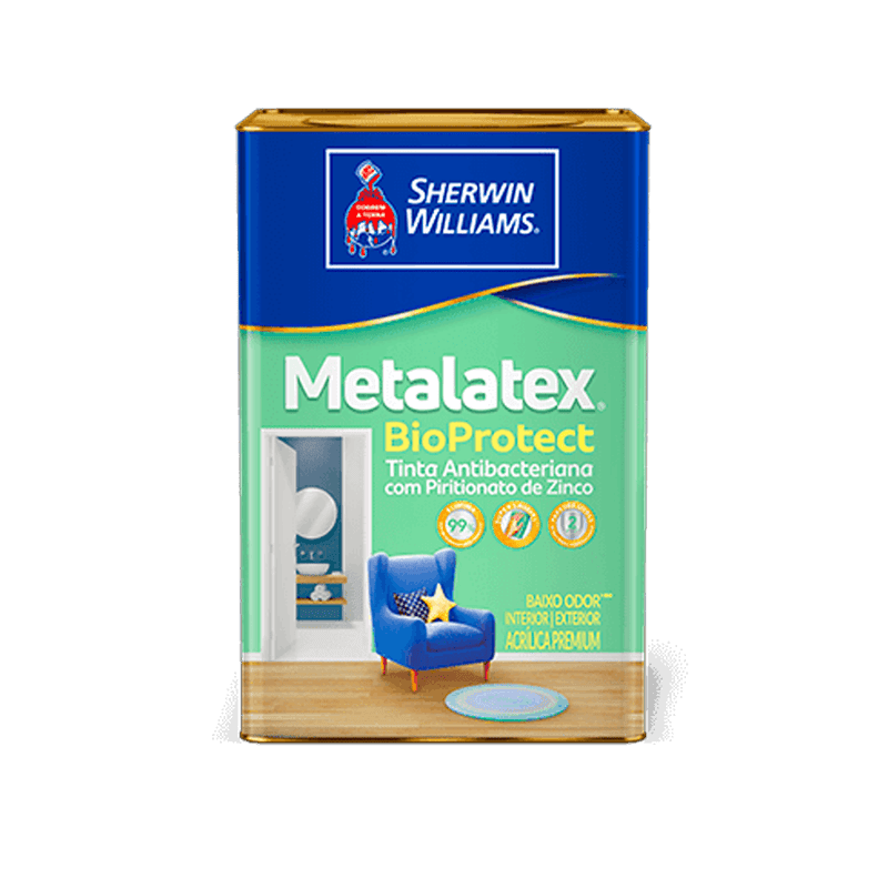 Tinta Antibacteriana Metalatex Bioprotect Branco Semi Acetinado 16L A Tinta Acrílica Antibacteriana Metalatex Bioprotect é a escolha ideal para quem busca proteção, higiene e durabilidade em cada pintura. Desenvolvida com tecnologia antimicrobiana de alta performance, sua fórmula exclusiva elimina até 99% das bactérias, fungos e mofos, mantendo o ambiente limpo e saudável por até 2 anos. Com acabamento semi acetinado e cor branco puro, a Bioprotect oferece ótima cobertura, fácil limpeza e alta resistência à umidade, sendo perfeita para banheiros, cozinhas, lavanderias, quartos e áreas internas expostas a vapor ou respingos. Além da proteção avançada, o produto conta com baixo odor, permitindo que o espaço seja ocupado rapidamente após a pintura — o cheiro praticamente desaparece em até 4 horas após a aplicação da segunda demão. Principais Benefícios - Elimina até 99% dos microrganismos testados - Protege contra bactérias, fungos e mofo por até 2 anos - Superlavável e resistente à limpeza frequente - Baixo odor — ideal para ambientes internos - Excelente para áreas úmidas e de uso intenso - Acabamento semi acetinado: brilho suave e sofisticado Onde aplicar Indicada para banheiros, cozinhas, lavanderias, quartos, garagens, saunas e adegas, ou qualquer ambiente que exija proteção extra contra umidade e contaminação.